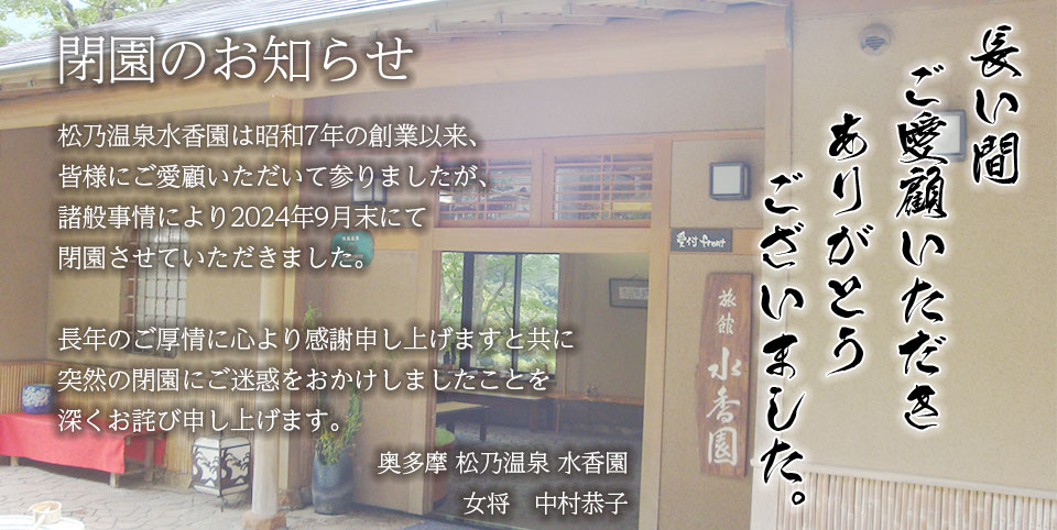 只今、旅館のほうは週末のみ営業させて頂いております。